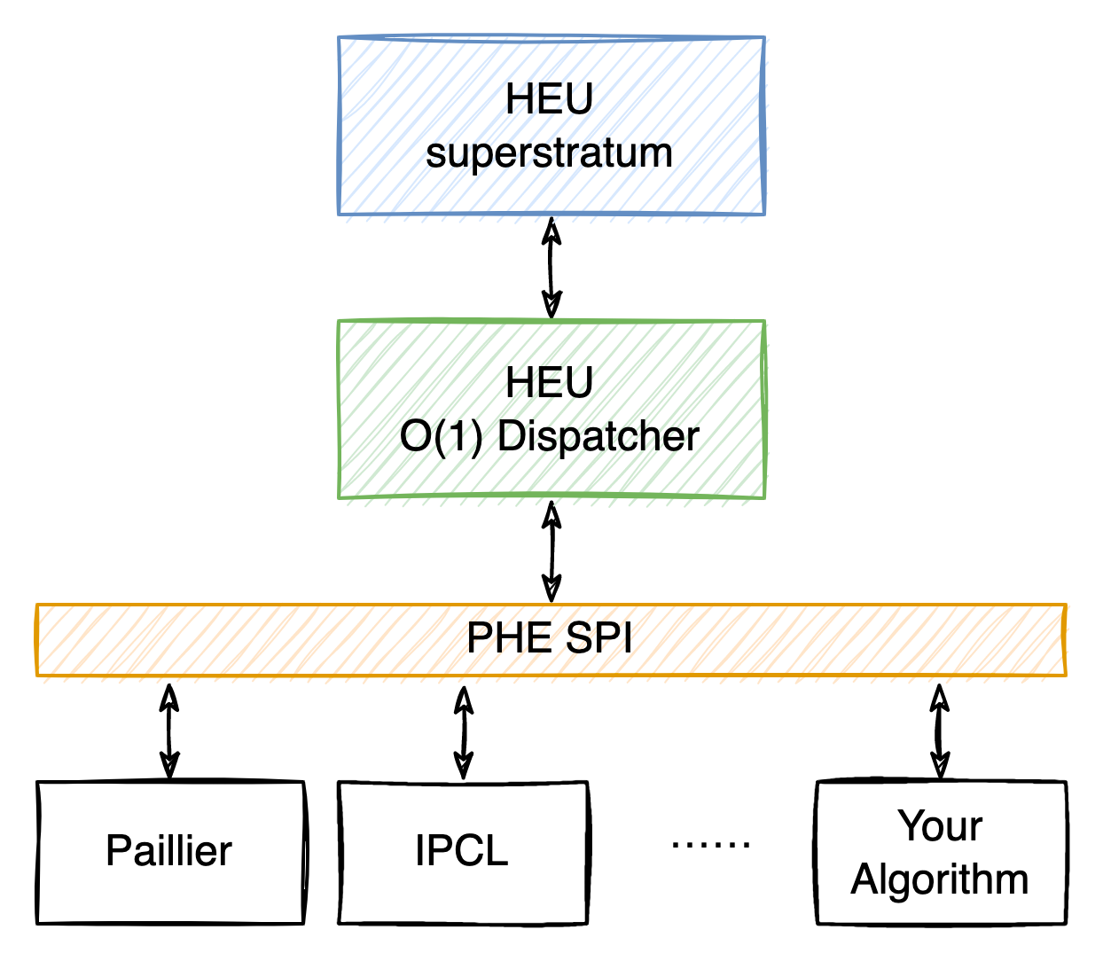 HEU 支持添加自定义 PHE 算法,添加新的 PHE 算法后,上层所有应用都可以无缝切换到新的算法上,用户无需修改任何业务代码。